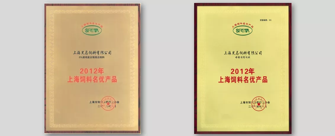 公司的產(chǎn)品一直廣受好評(píng),曾先后獲得過(guò)“上海飼料名優(yōu)產(chǎn)品”、“規(guī)模化豬場(chǎng)優(yōu)選產(chǎn)品價(jià)值體系”、“經(jīng)典好豬料系列品牌”、“豬料技術(shù)創(chuàng)新優(yōu)秀獎(jiǎng)”、“無(wú)抗先鋒飼料品牌創(chuàng)新獎(jiǎng)”等多項(xiàng)榮譽(yù)。