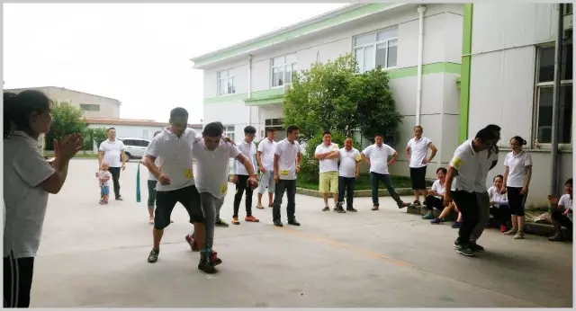 兩人三足特別有趣味性,有看點。看似簡單的動作卻是充滿了挑戰(zhàn)。有的選手將布條綁在踝關(guān)節(jié),有的選手則綁在小腿近膝蓋的位置,跑道上演著各種戰(zhàn)術(shù)與技巧的大比拼,選手們或走或跑。有人摔跤了兩人相互扶起來調(diào)整步伐又繼續(xù)沖刺,各組隊員分秒必爭,勢必一決高下。這項比賽讓我們見識到了員工的團結(jié)協(xié)作,堅持不懈與敢于挑戰(zhàn)的精神。