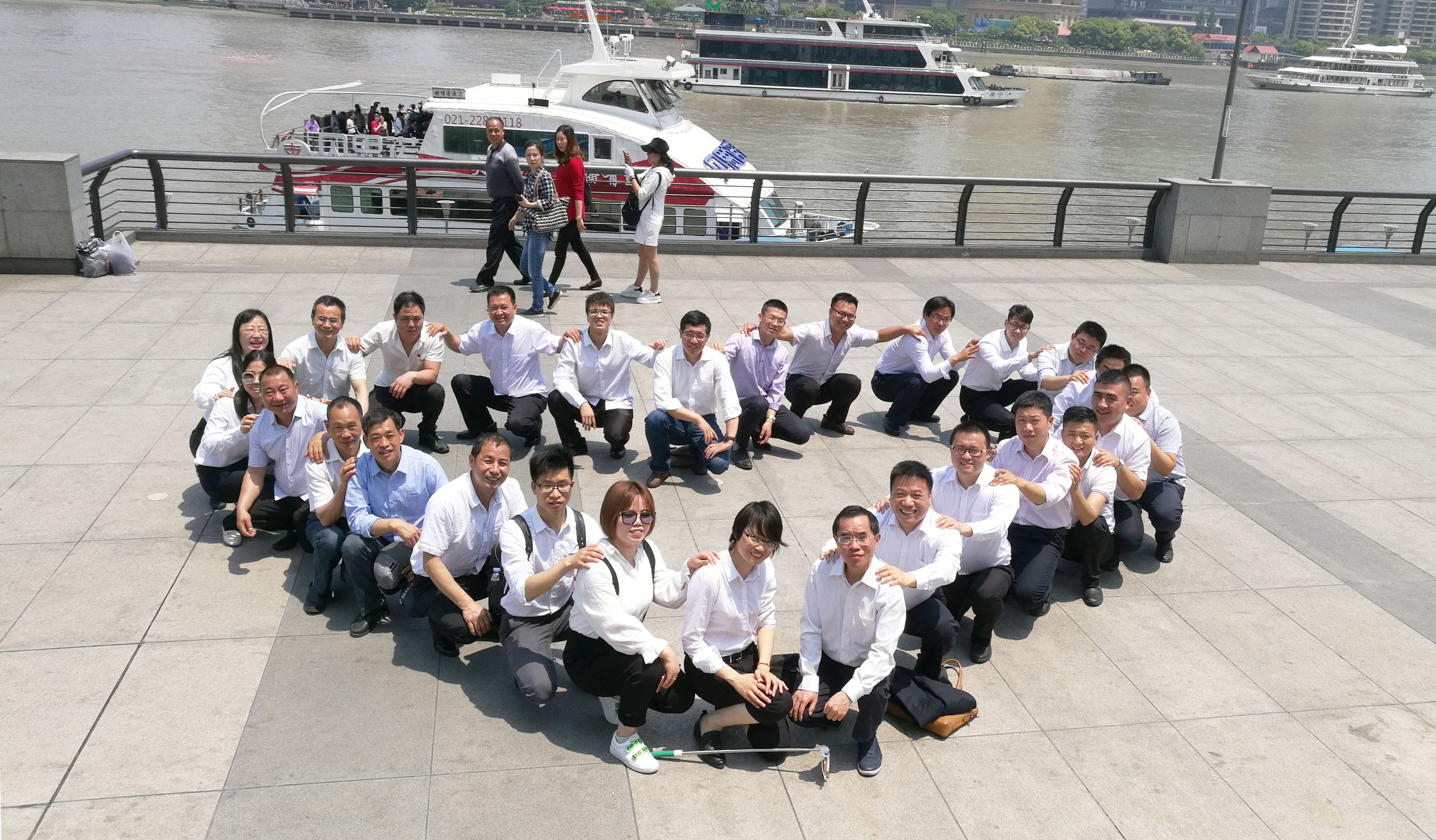 團隊成員分組出行,上午9:30準時在上海地標性建筑物東方明珠門口集合。成員們個個精神抖擻,喜笑顏開。白色襯衫和黑色褲子的簡單搭配,在任何一個拍照景點,都成了一道亮麗的風景線,讓過往的游客不時駐足觀看與點贊。