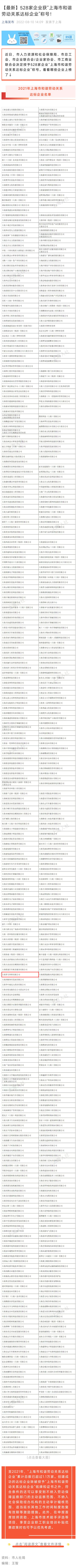 近日,市人力資源和社會保障局、市總工會、市企業(yè)聯(lián)合會/企業(yè)家協(xié)會、市工商業(yè)聯(lián)合會決定授予528家企業(yè)“上海市和諧勞動關系達標企業(yè)”稱號??纯茨男┢髽I(yè)上榜了↓