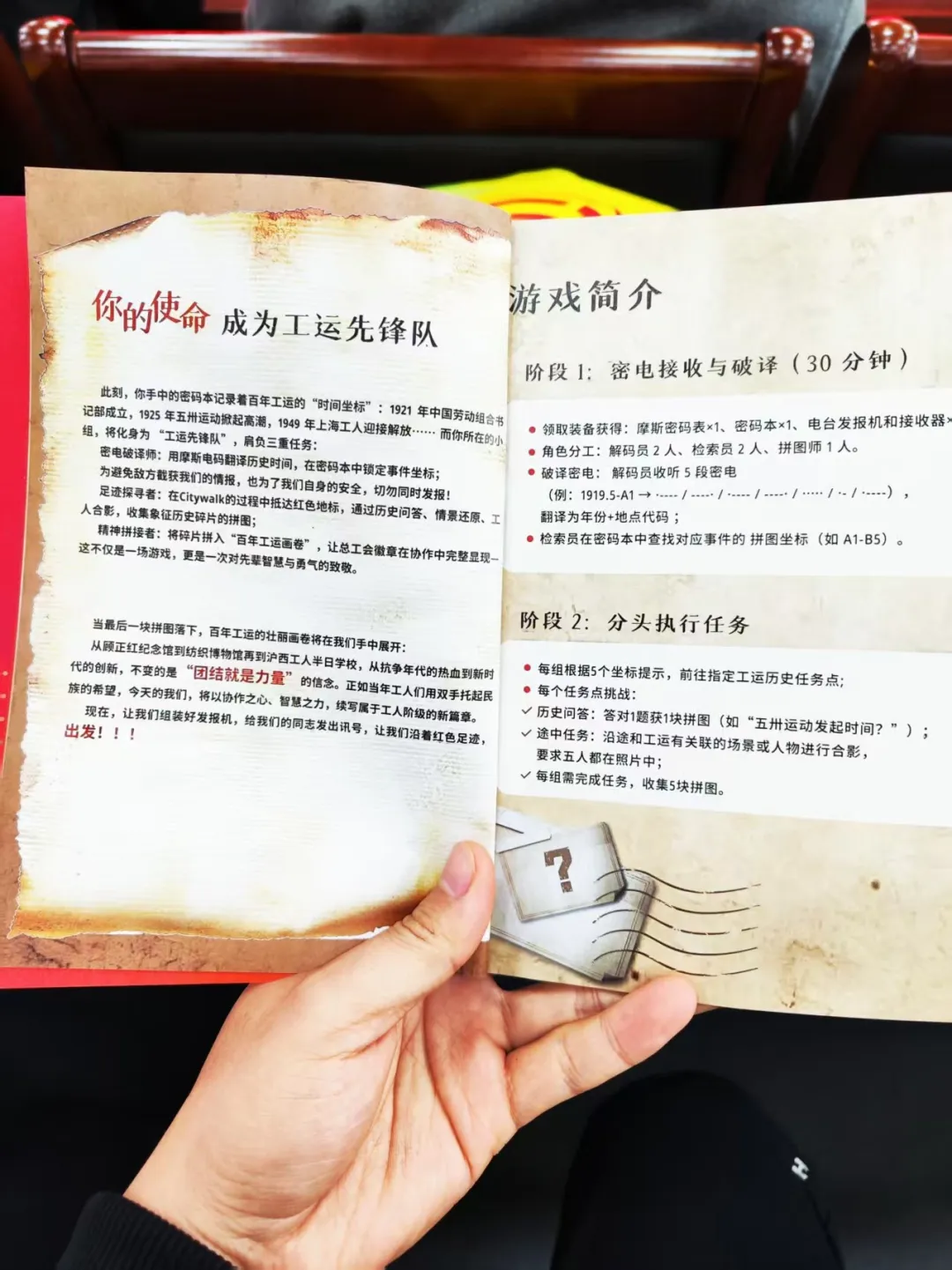 活動(dòng)主辦方精心設(shè)計(jì)的 "工運(yùn)百年紀(jì)念手冊(cè)" 成為貫穿全程的 "密鑰",手冊(cè)內(nèi)不僅包含詳細(xì)的活動(dòng)路線圖,更藏有摩斯密碼本與打卡任務(wù)。