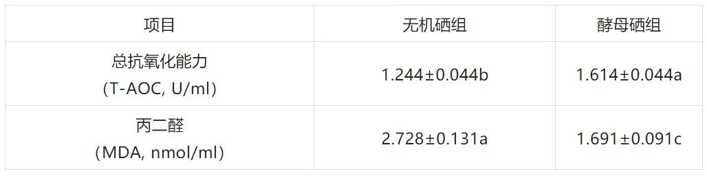 此外,下表中的數(shù)據(jù)顯示,酵母硒還能提高總超氧化物歧化酶的活力。
